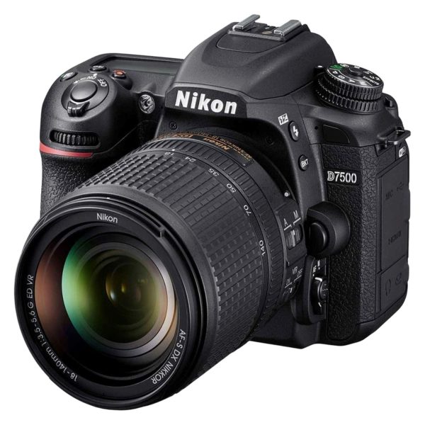 دوربین DSLR نیکون مدل D7500، حسگر APS-C با دقت موثر 20.9 مگاپیکسل، عکاسی پیاپی 8 فریمبرثانیه، فیلمبرداری با رزولوشن 4K UHD و Full HD، نمایشگر لمسی و متحرک، همراه با لنز 18-140 میلیمتری با بیشترین گشودگی دیافراگم f/3.5 – f/5.6