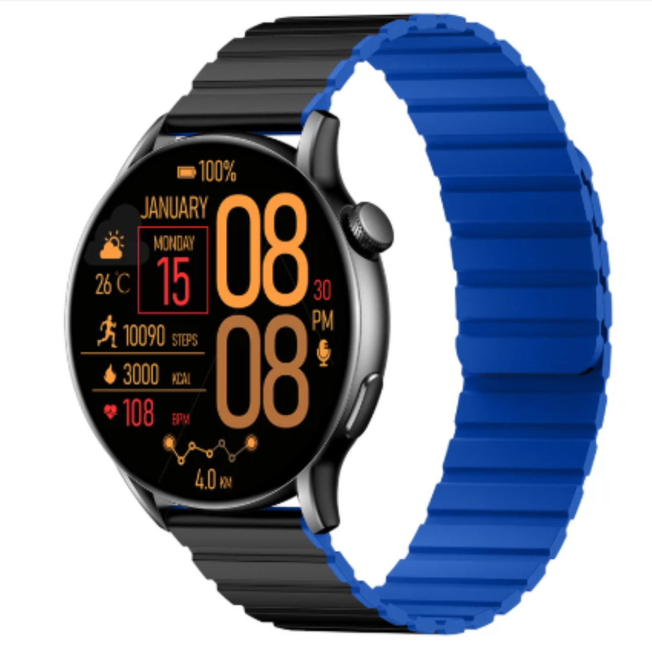 ساعت هوشمند گلوریمی مدل M2 MAX، مناسب برای ورزش، روزمره، رسمی، دارای قابلیت‌های صفحه نمایش رنگی و لمسی، قابلیت مکالمه از طریق بلوتوث، بند سیلیکون، فرم صفحه دایره، فناوری GPS، با حافظه داخلی چهار گیگابایت